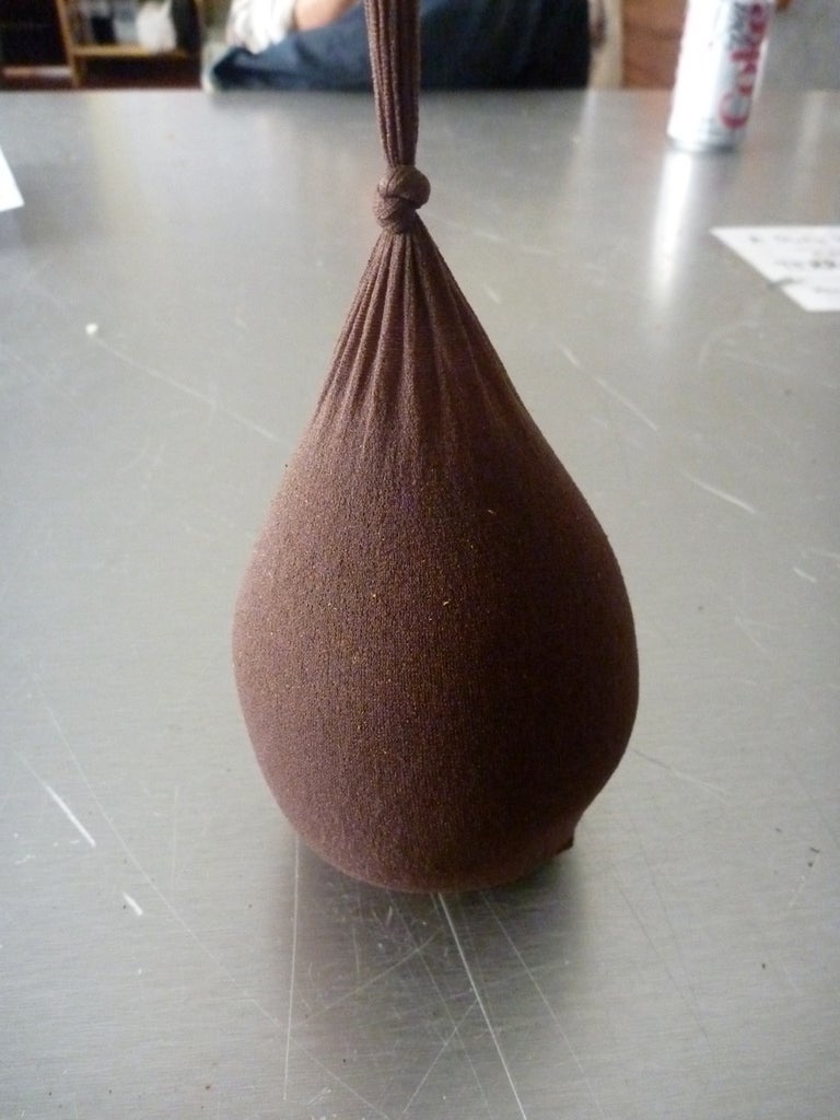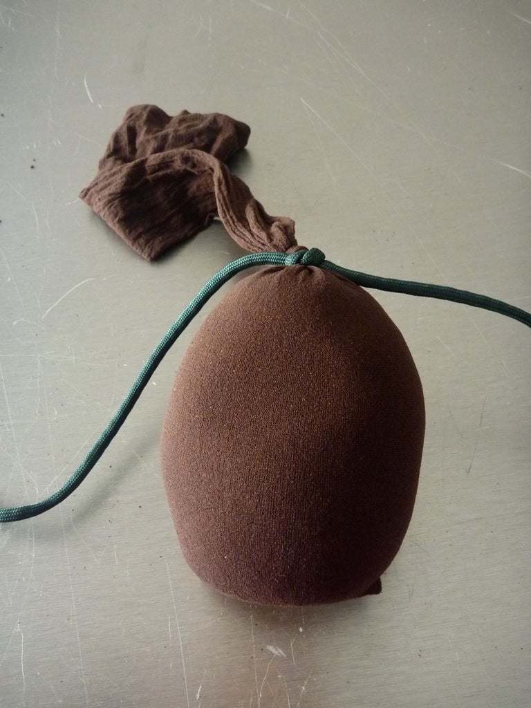 Use your hand to push the grounds down to the bottom of he stocking and form them into a ball.